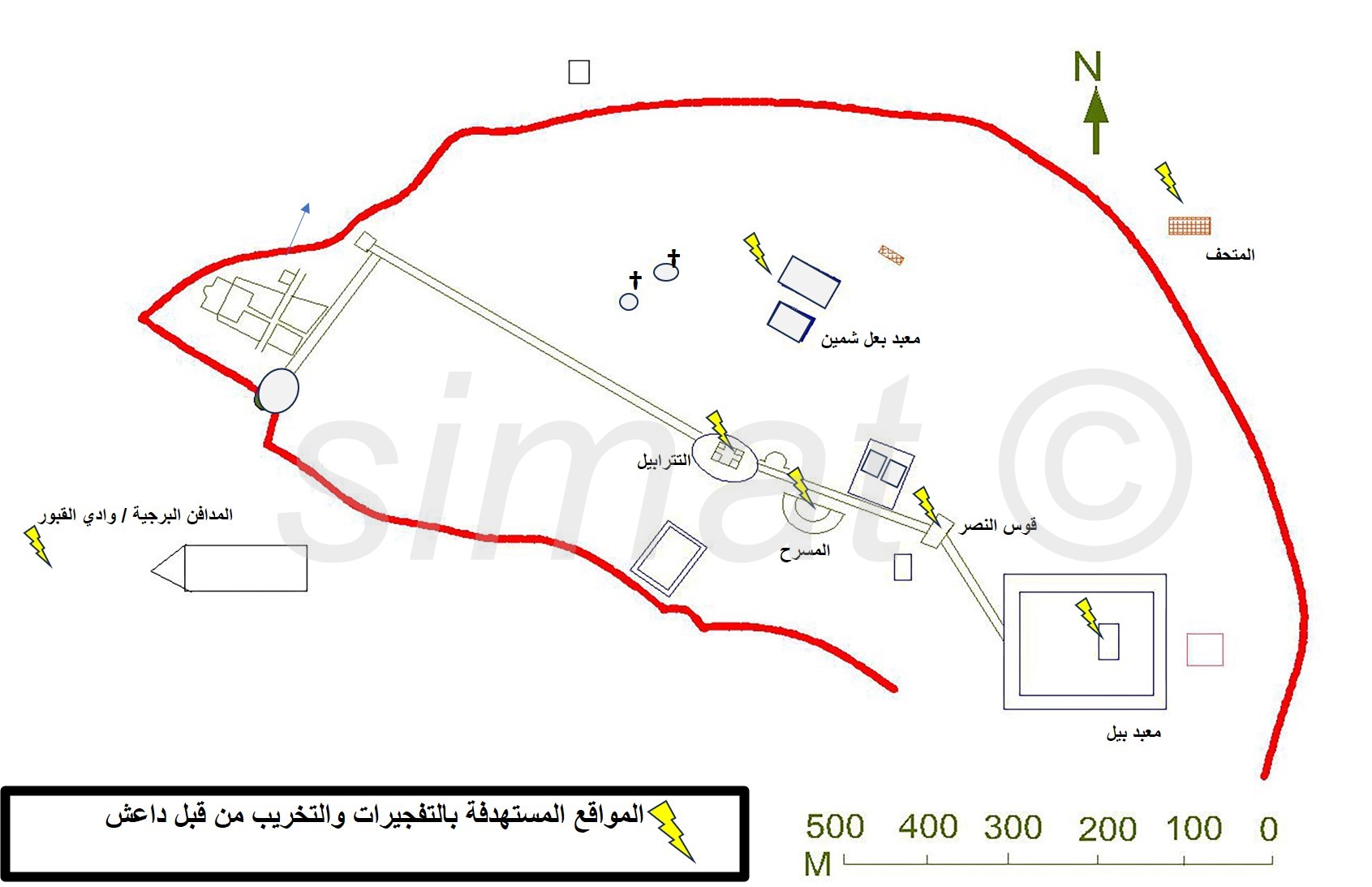 من خلال زيارة ميدانية لفريق سمات وبمشاركة الزملاء من مركز آثار ادلب بتاريخ 17/12/2024 إلى مدينة تدمر بعد تحريرها من قبل قوات عملية رع العدوان. تم معاينة الموقع من خلال إجراء مشاهدات أولية تهدف إلى تقييم الحالة الراهنة، وإعطاء صورة سريعة عن الواقع الأثري للمدينة بعيداً عن الخطاب الرسمي والإعلامي الذي اتخذه النظام والروس فيما يخص أثار المدينة ومشاريع الترميم القائمة.