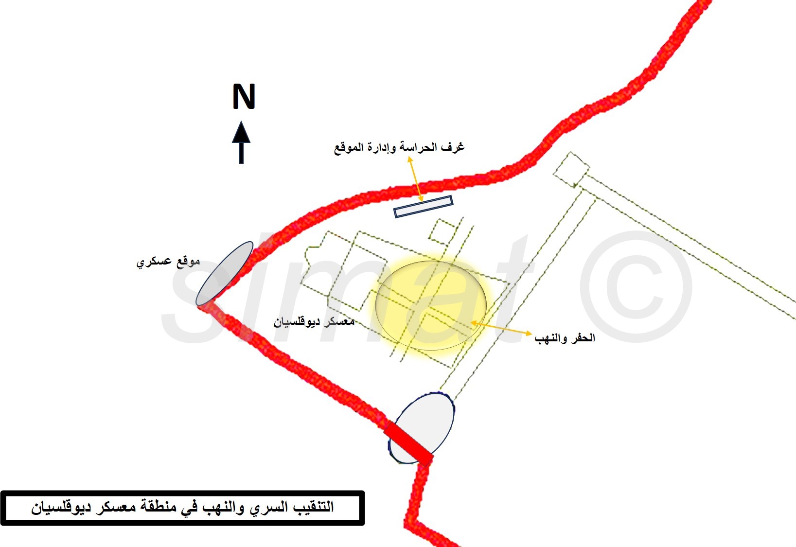ولكن التعدي الأهم هو وجود أعمال حفر واسع في موقع معسكر ديوقلسيان حيث جرى حفر منطقة واسعة نسبياً بشكل يدوي على الأغلب. (صورة 12)