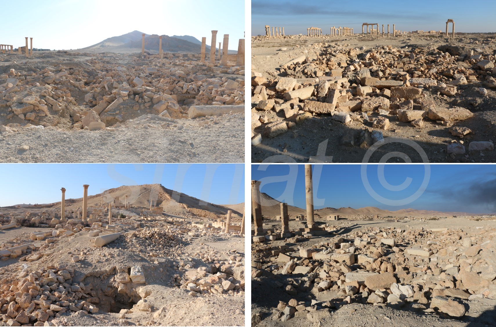 أما فيما يخص معالم تدمر الشهيرة والتي تم تدميرها على يد تنظيم الدولة، فهي لا تزال على وضعها السابق باستثناء أعمال فرز الركام في قوس النصر حيث جرى فرز الأحجار وترقيمها. (صورة 8)