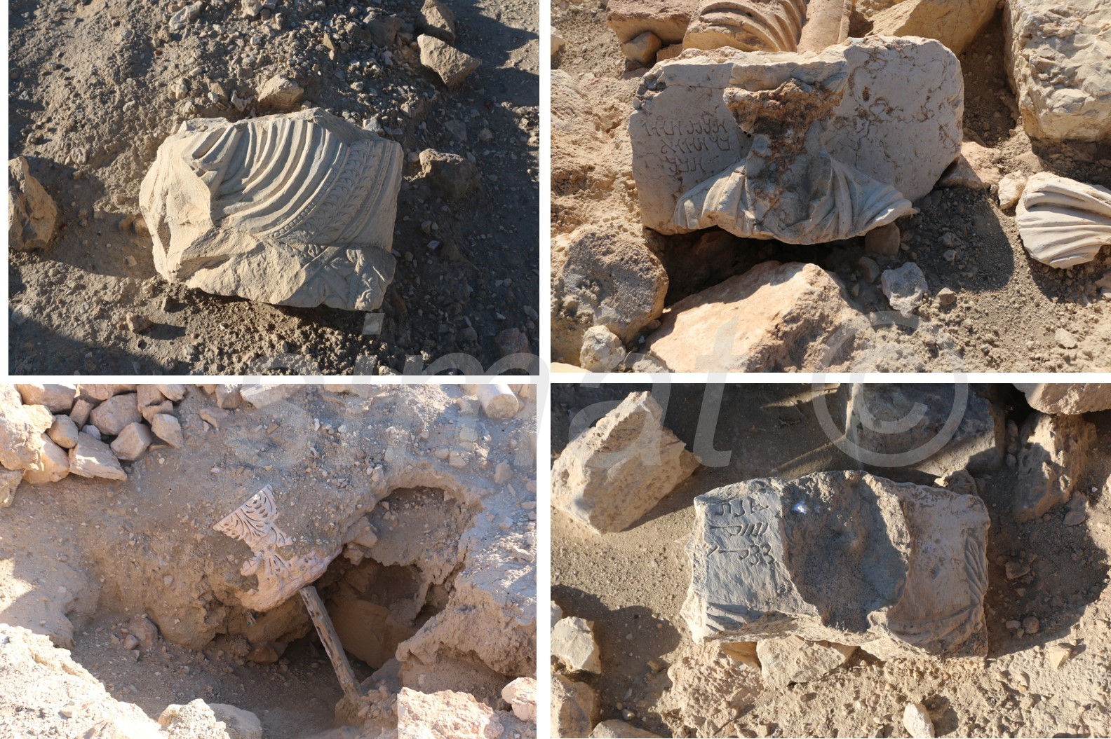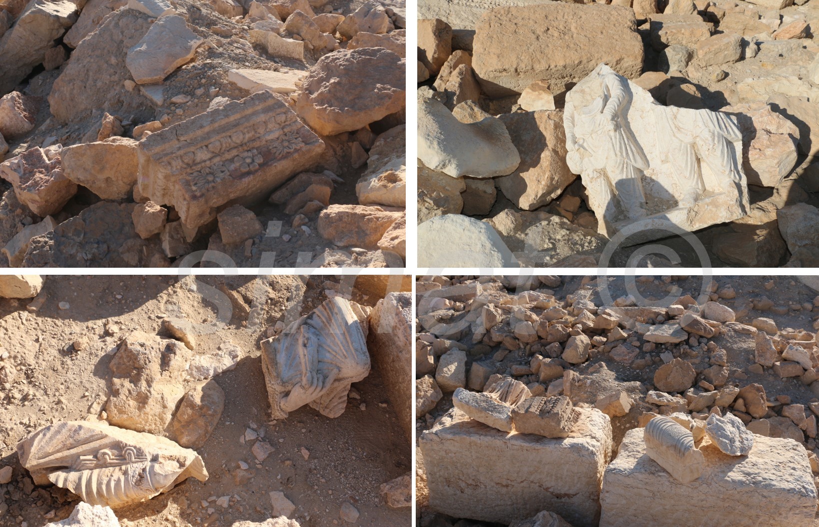 مما يشير إلى أن أعمال الحفر في هذه المنطقة تمت تحت إشراف أو نظر قوات النظام. الأمر الأخر والمستغرب بشدة هو وجود مجموعة كبيرة من الشواهد وكسر المنحوتات التي تحمل قيمة فنية لا تزال مبعثرة في المكان مما يؤكد أن منطقة الحفريات هذه لم توثق أو تلاحظ من قبل السلطات الأثرية. (صورة 13/14)