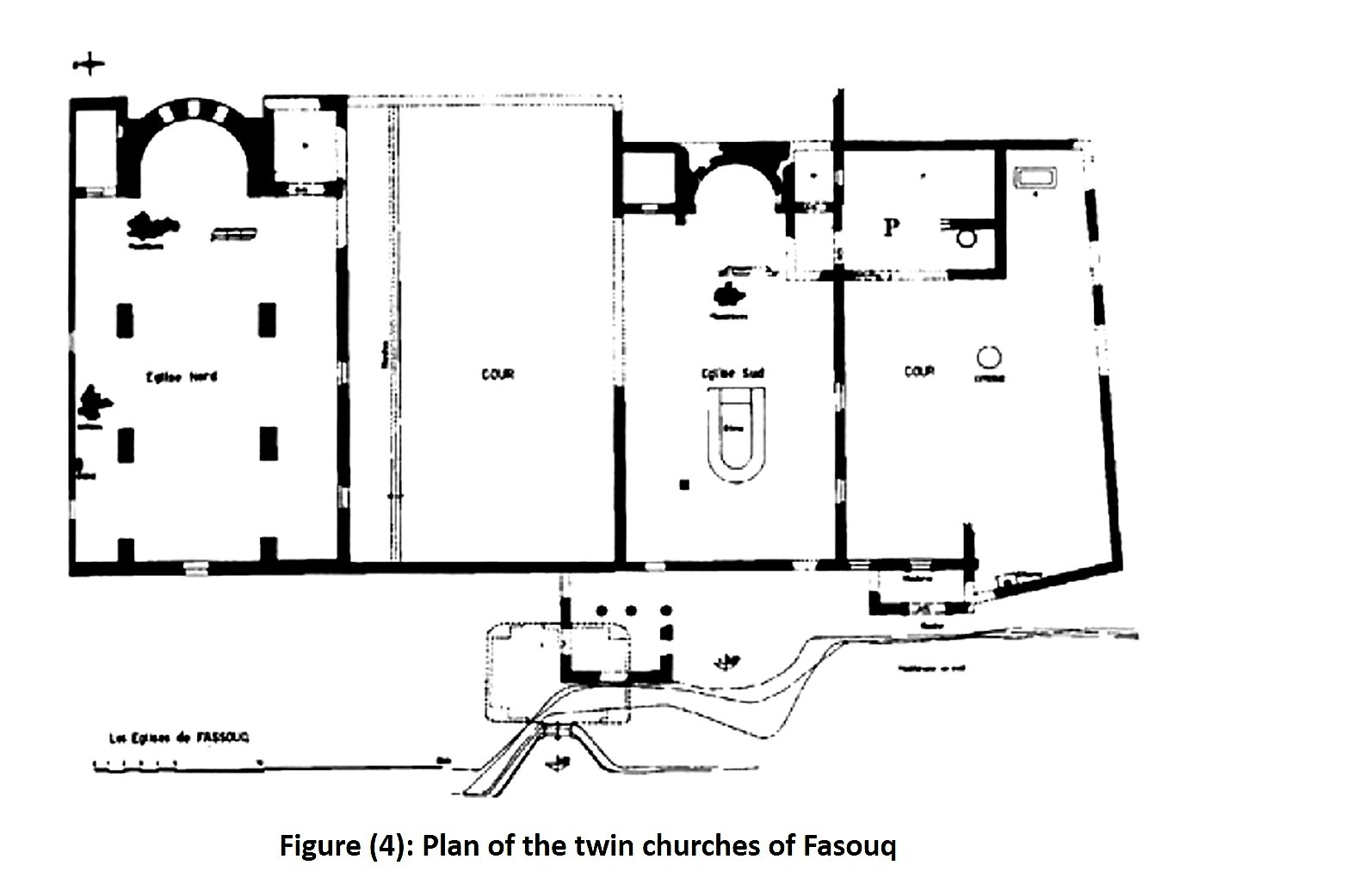 It is located to the south of Kafer Oukab village and it is smaller in area than the aforementioned site. The village enjoys a rich flora, especially Laurel and oak. This site goes back to the Roman era and even before that. There are around 69 residential buildings in this site and several engraved tombs in the rocks. Among the well-preserved archaeological buildings of the site, there are two twin churches, which are still standing until now. Figure (4)