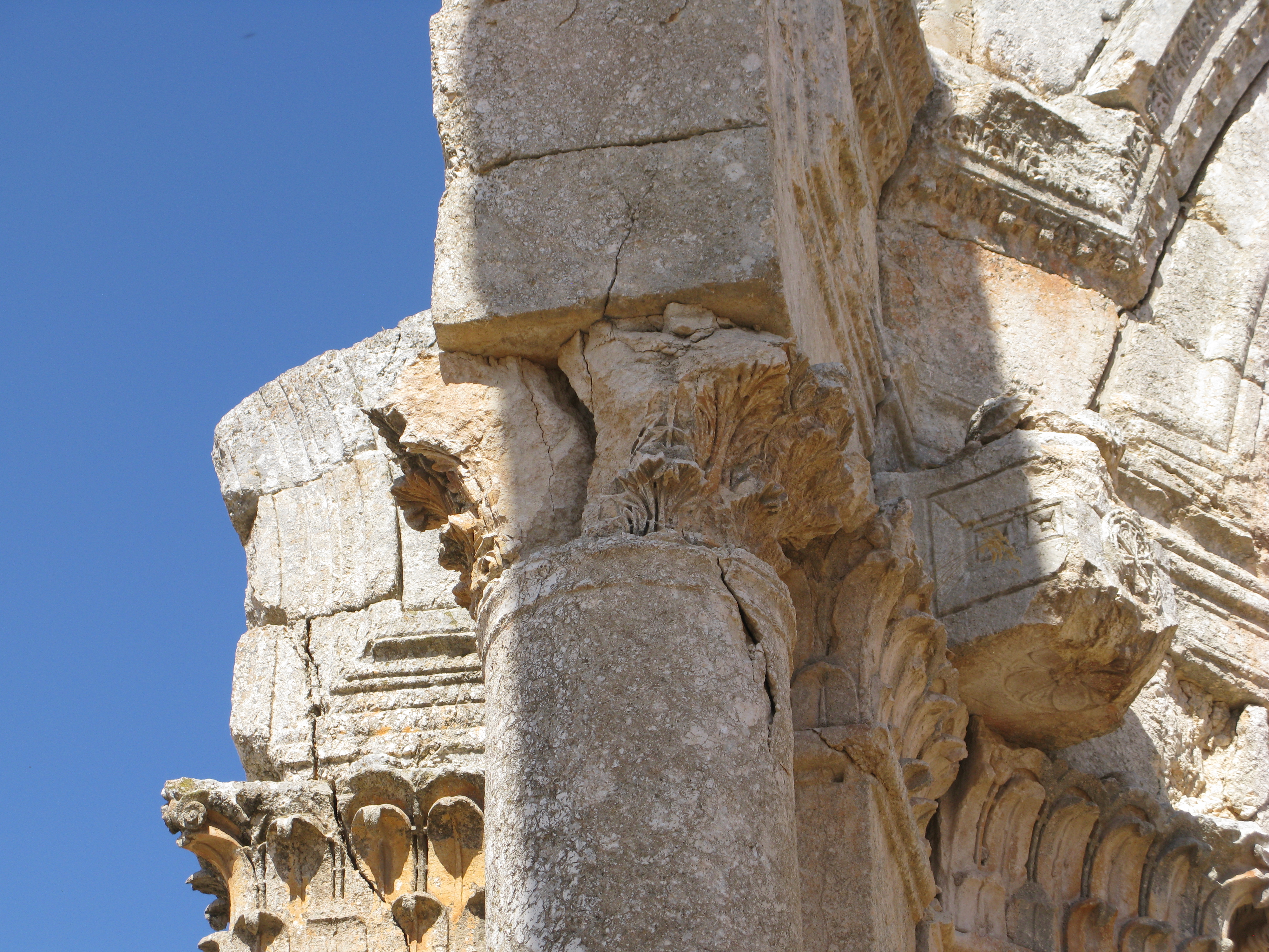 It is the western church of the intersecting churches. Only the eastern arch of the church that connected it to the octagonal body carrying the dome above the pillar of St. Simeon is still standing today. This arch is carried on two cylindrical columns with Corinthian crowns, adjacent to them two buttresses that help to carry the arch as well.