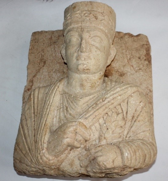 search, the team reached out to Syrian and international archaeologists who are specialized in the Palmyrene antiquities in order to assist us in determining the source of these objects. Thanks to the Danish researcher Dr. Rubina Raja[3], we were able to identify the objects and to certify that six of these objects belong to the Artaban tomb in the city of Palmyra. These six artifacts were among the twenty-two archaeological objects that were looted from the tomb in 2014. The remaining object, on the other hand, belongs to another tomb in Palmyra that we have not been able to identify yet.